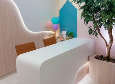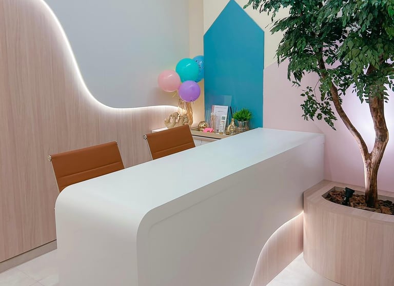 Um espaço pensado para acolher famílias com conforto, cores suaves e um toque lúdico que já anuncia a experiência Lepeti: leve, humana e cheia de afeto.